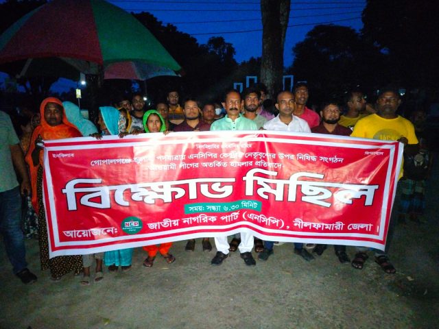 বিক্ষোভ মিছিল ও প্রতিবাদসভায় নেতৃত্ব দেন জাতীয় নাগরিক পার্টির নীলফামারী জেলার প্রধান সমন্বয়ক আব্দুল মজিদ। তিনি বলেন,