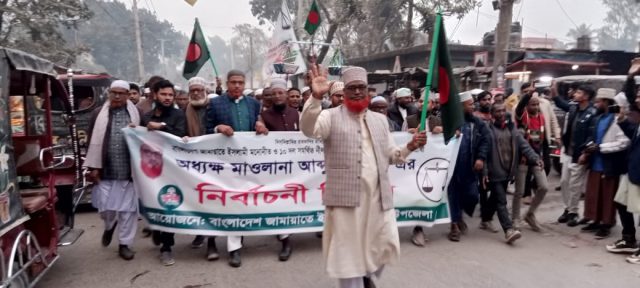 নীলফামারী-১ (ডোমার–ডিমলা) আসনে বাংলাদেশ জামায়াতে ইসলামী মনোনীত ও ১০ দলীয় জোট সমর্থিত সংসদ সদস্য প্রার্থী অধ্যক্ষ আব্দুস সাত্তারের নির্বাচনী মিছিল অনুষ্ঠিত হয়েছে।